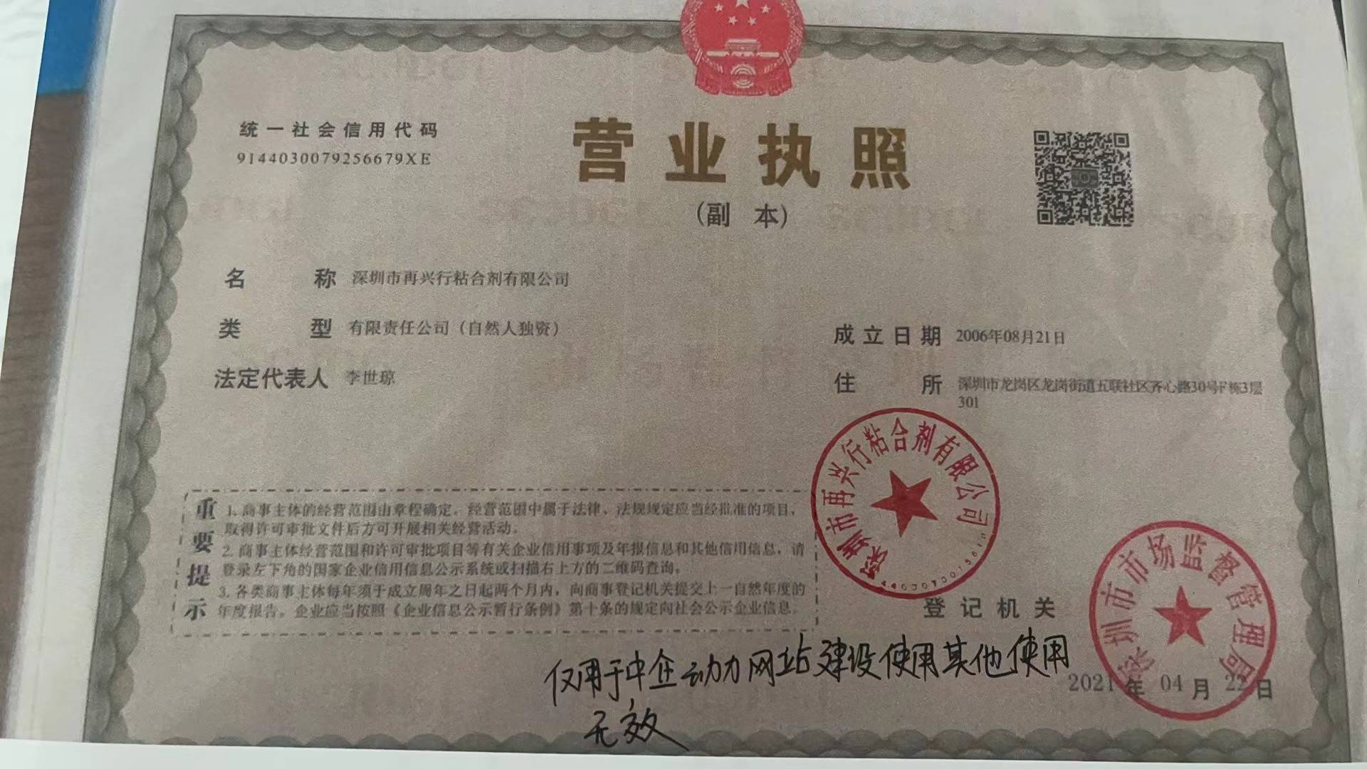 地址:廣東再興行粘合劑有限公司